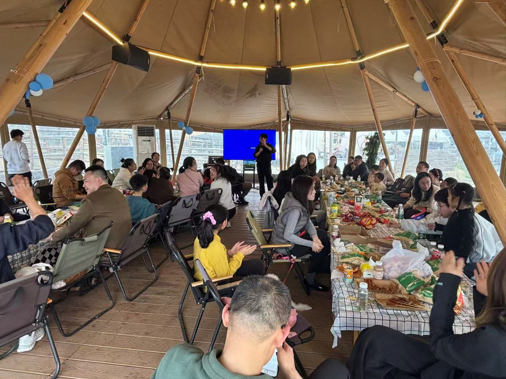 当天下午,教职工们准时抵达营地后有序签到、熟悉环境。开阔的草坪与完善的设施,让大家迅速卸下工作疲惫,融入春日的惬意氛围。自助烧烤、火锅体验环节中,大家分工协作、各展身手,新鲜的食材在欢声笑语中变成美味,围坐共享美食的时刻,不仅拉近了彼此距离,更让团队氛围愈发温馨。